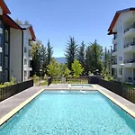 Köksutrustning inkluderar mikrovågsugn och kylskåp.En utomhusbassäng finns på plats.